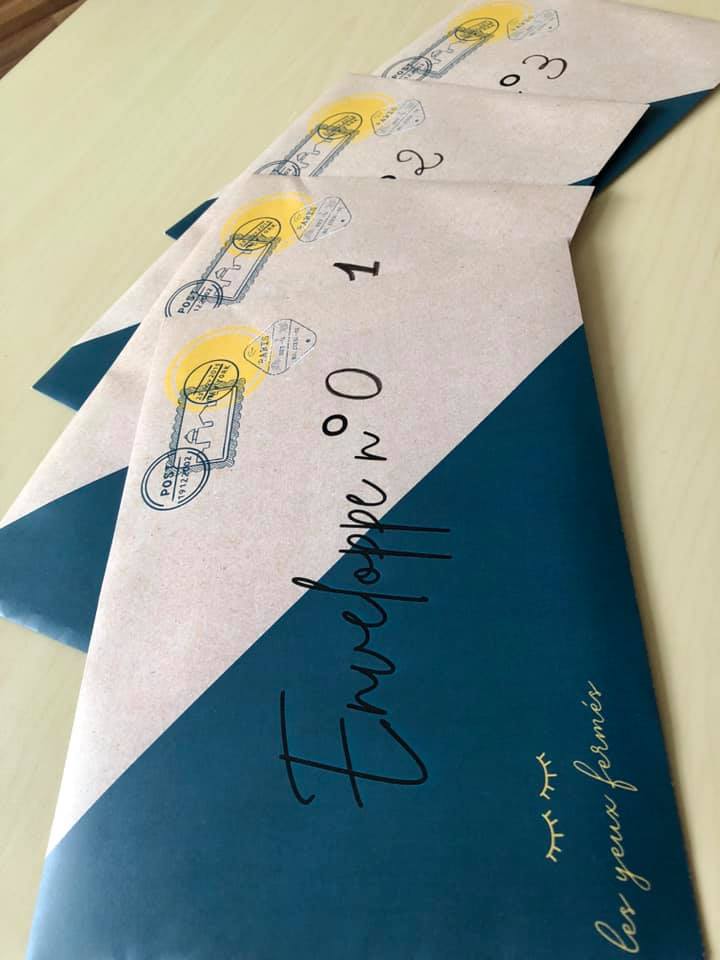 Ensuite, ton séjour se dévoile en ouvrant d’autres enveloppes au fur et à mesure.